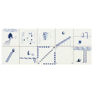 Dintorni is a porcelain collection by acclaimed designer Inga Sempé in collaboration with Mutina, bringing a whimsical reinterpretation to the classic 8×8 tile format. Meaning “surroundings,” Dintorni explores what lies beyond the known, embracing surprise and discovery through a series of distinct visual worlds. Hand-drawn patterns replace digital precision, creating surfaces that feel soft, dynamic, and human. Variations including Scala, Bandiere, Dama, and the dreamlike Isola encourage playful combinations and personal expression. The collection is completed by two solid colors and Raccordo, a glazed porcelain profile in Nero and Caramel that functions as a transition, finishing edge, or small shelf.